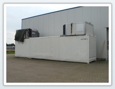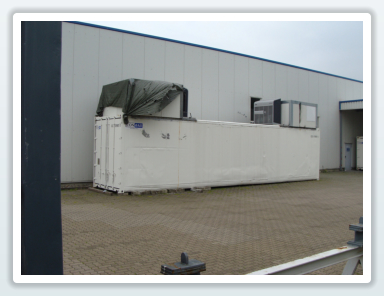 Aggregat 10 KW Kälteleistung bei einer Innentemperatur von -25°C. Länge 12m - Breite 2,5m - Höhe 4,36m.